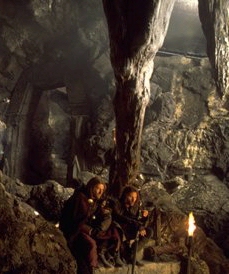 SCENE THREE: Now wearing the Ring fashioned from the Rheingold, Alberich makes his brother Mime forge him a magical helmet, the Tarnhelm, with which he can assume any form. Wearing it, Alberich becomes invisible; he runs about demanding that the other dwarves bring him more gold, and makes their lives generally miserable. While he's so engaged, Wotan and Loge arrive in Niebelung and talk with Mime. Mime explains that Alberich, using the Ring's power, has made all the other Niebelung dwarves his slaves.