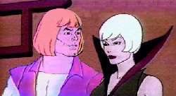I suppose the grand finale of the series might involve... oh, say... a mysterious cloaked woman who, over a handful of episodes, might be seen slowly mounting an underground resistance movement to Skeletor's evil government. Towards the end, this mysterious figure meets He-Man and describes a plan which is certain to free Eternia from the grip of Skeletor for all time. She tells him that she is going to Greyskull to gain Sorceress Teela's aid for the Eternian revolution. But to gain Teela's trust, she must bring something to prove her good faith... He-Man, in chains.
