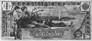 Silver certificates are an older form of U.S. currency; their value was backed by silver held in the U.S. Treasury, and they could be redeemed at the Treasury for silver dollars. An 1886 Act of Congress authorized the creation of a new series of silver certificates, and so it came to pass that the Secretary of the Treasury gave the Bureau of Engraving and Printing the task of designing and printing the new currency.