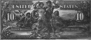 The currency which was in distribution soon became a rarity, virtually unknown to anyone save numismatists and currency collectors. For such a short-lived series, however, it's surprising how many of the notes have survived the intervening century. It appears that many people refused to trade the 1896 notes in to be destroyed, preferring instead to keep them for their artistry alone.